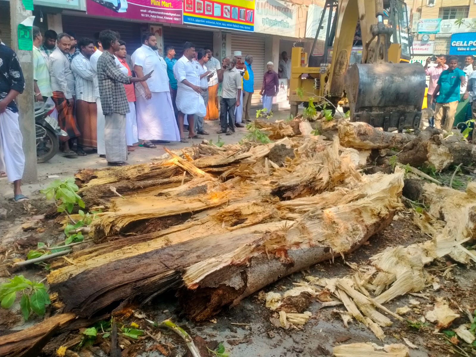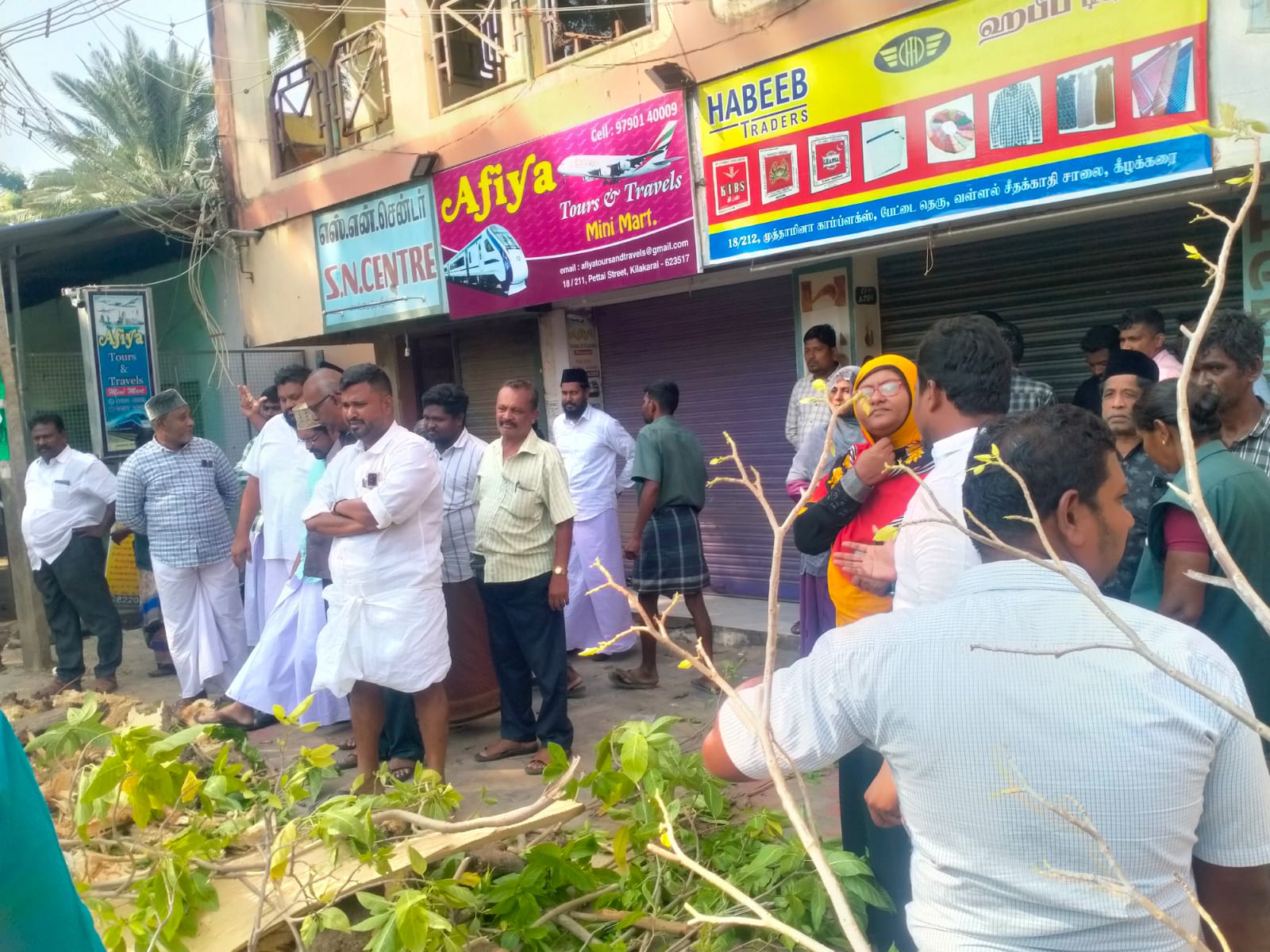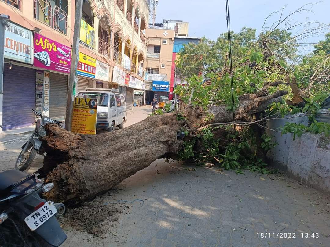 கீழக்கரை பேட்டை தெருவில் உள்ள 200 ஆண்டுகள் பழமையான லட்சக் கட்டை மரம் சாய்ந்தது. உடனடியாக ஸ்பாட்டிற்கு வந்த நகர் மன்ற தலைவர் மற்றும் துணைத் தலைவர்