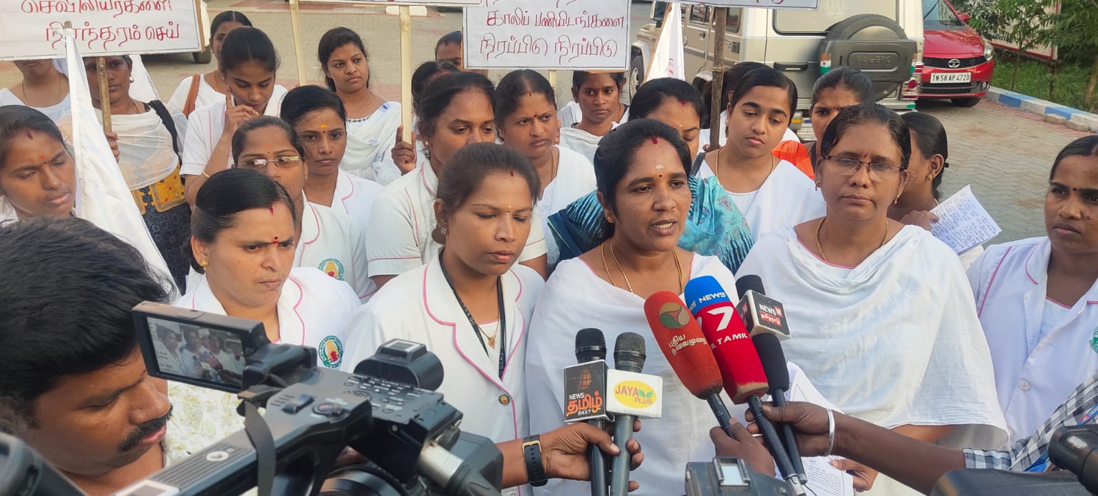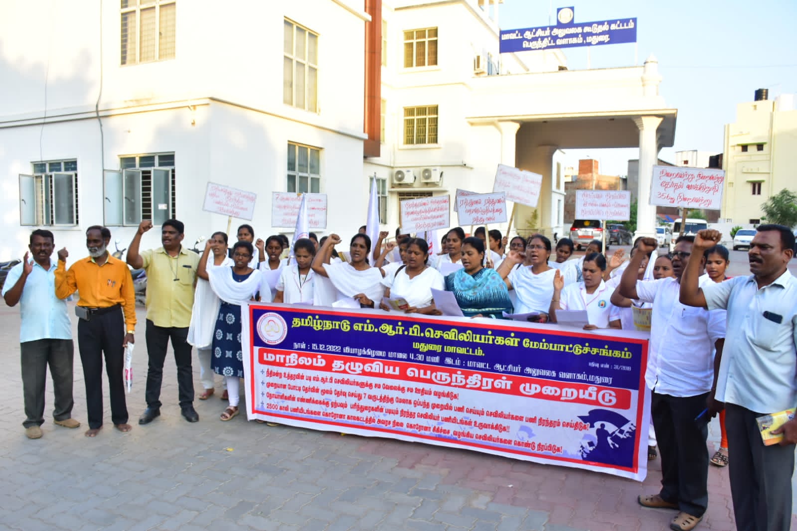 தமிழகத்தில் 7 ஆண்டுகளாக தொகுப்பூதியத்தில் பணியாற்றும் 7,700 செவிலியர்களை நீதிமன்ற உத்தரவுப்படி பணி நிரந்தரம் செய்யக் கோரி மதுரையில் ஆர்ப்பாட்டம்