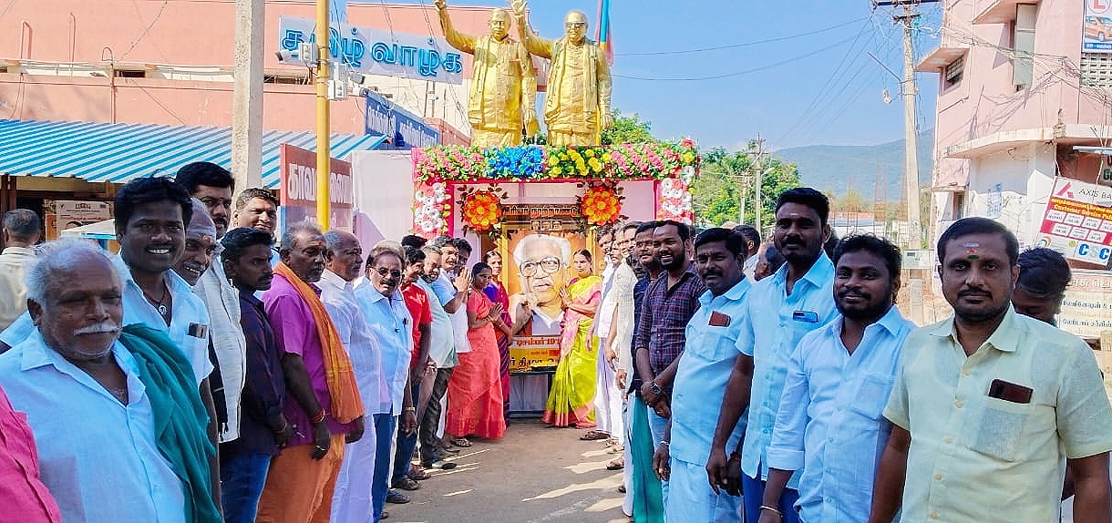 கெங்கவல்லி பேரூர் செயலாளர் பாலமுருகன் தலைமையில் இன்று பேராசிரியர் அன்பழகன் பிறந்தநாள் விழாவை முன்னிட்டு அவரது படத்துக்கு மலர் தூவி மரியாதை செய்தனர்