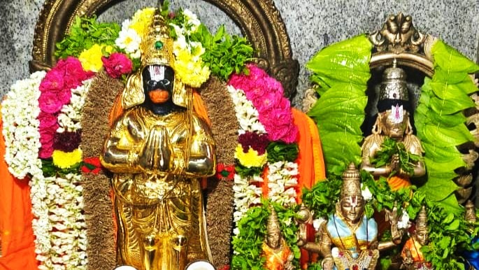 காட்பாடியில் தங்க கவச அலங்காரத்தில் அருள்பாலித்த ஸ்ரீபக்த ஆஞ்சநேயர்