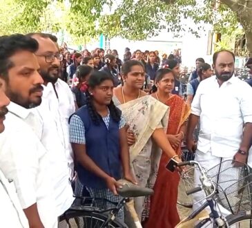 திருமங்கலத்தில் உள்ள அரசு மற்றும் தனியார் மேல்நிலைப்பள்ளியில், 780 மாணவிகளுக்கு தமிழக அரசின் விலையில்லா மிதிவண்டி வழங்கும் விழா – நகராட்சி தலைவர் தலை மை ஏற்பு.
