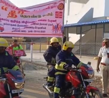 தீ தொண்டு வார விழிப்புணர்வு சைக்கிள் பேரணி தமிழ்நாடு தீயணைப்பு மற்றும் மீட்பு பணிகள் துறை சார்பாக ஏப்ரல் 14 ஆம் தேதி தீ தொண்டுநாள் அனுசரிக்கப்படுகிறது....