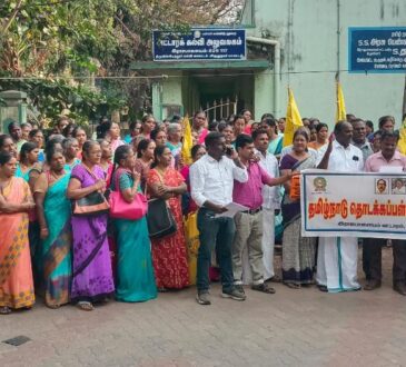 இராஜபாளையத்தில் தமிழ்நாடு தொடக்கப்பள்ளி ஆசிரியர் கூட்டணி ஜனவரி மாத சம்பளத்தை வழங்க கோரியும் தேர்தல் கால வாக்குறுதியை நிறைவேற்றக் கோரியும் கவன ஈர்ப்பு ஆர்ப்பாட்டம் 200க்கும் மேற்பட்ட ஆசிரியர்கள் பங்கேற்பு