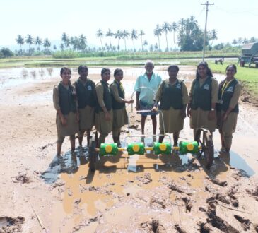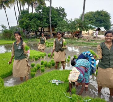 கல்லூரி மாணவிகளுக்கு நெல் பயிர் நடவு செய்யும் முறை பயிற்சி