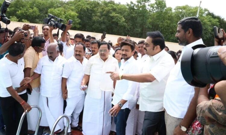 வேலூர் அடுத்த காட்பாடியில் உள்ள மாவட்ட விளையாட்டு மைதானத்தை ஆய்வு செய்த அமைச்சர் உதயநிதி ஸ்டாலின்