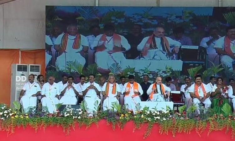 வேலூர் அடுத்த கந்தனேரியில் பாரதப் பிரதமரின் 9-ம் ஆண்டு சாதனை விளக்க கூட்டத்தில் பங்கேற்ற மத்திய உள்துறை அமைச்சர் அமித்ஷா