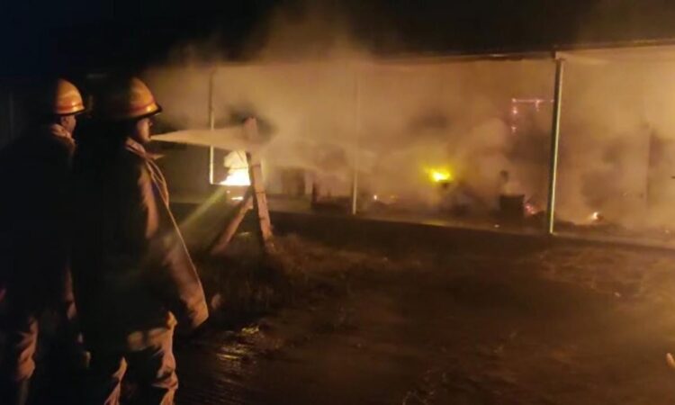 சிவகாசி அருகே, பூட்டிக் கிடந்த பட்டாசு ஆலையில் இடி, மின்னல் தாக்கி தீ விபத்து