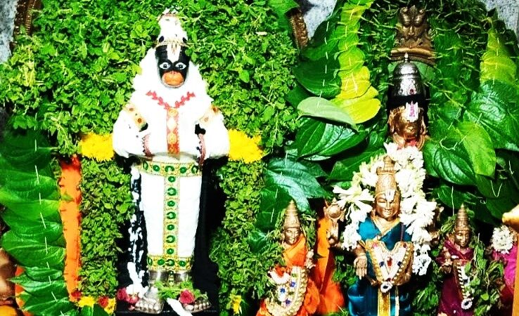 வேலூர் அடுத்த காட்பாடி சித்தூர் பஸ் நிலையத்தில் பக்த அஞ்சநேயருக்கு துளசி அலங்காரம்