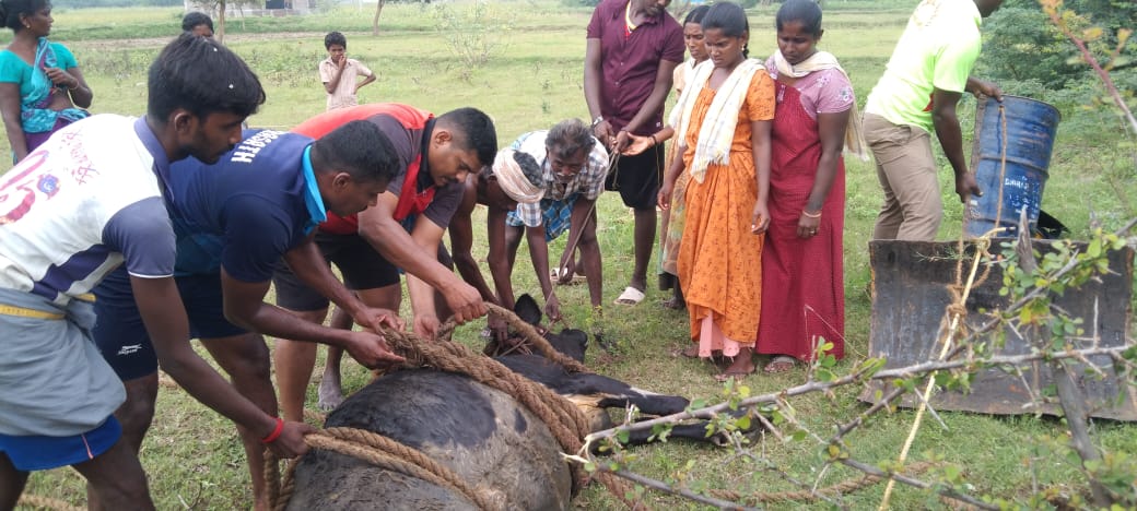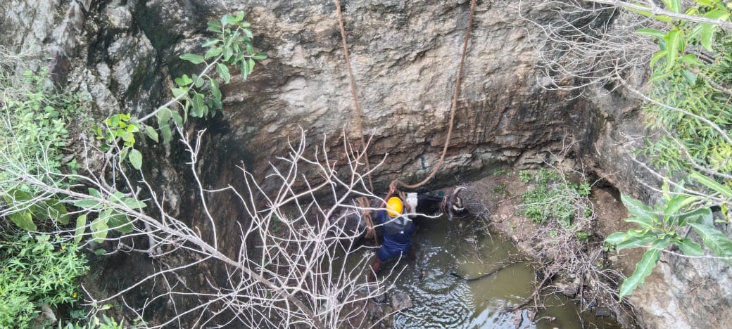 மதுரை மாவட்டம் உசிலம்பட்டி அருகே ராஜகாபட்டி கிராமத்தில் வசித்து வருபவர் பெரிய கருப்பன் இவருடைய பசுமாடு இதே ஊரைச் சேர்ந்த ராஜா என்பவருடைய கிணறு அருகில் மேய்ந்து கொண்டிருந்தது.அப்போது பசுமாடு எதிர்பாராத விதமாக கிணற்றுக்குள் தவறி விழுந்து விட்டது.