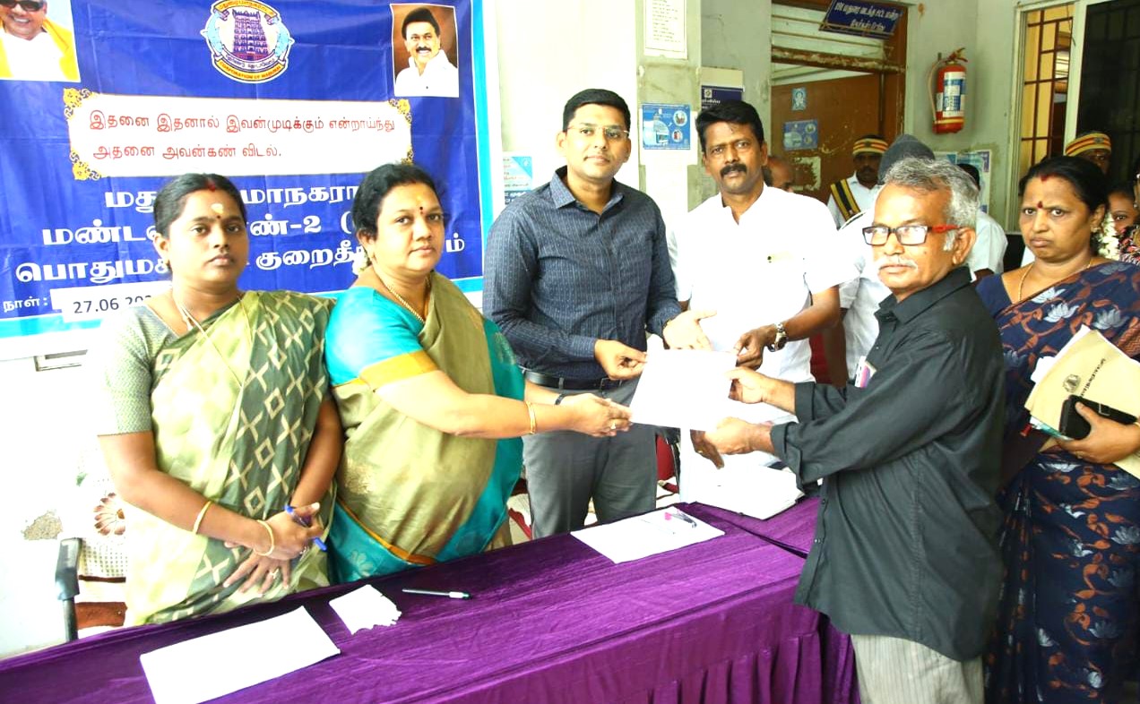 மதுரை மாநகராட்சி பொதுமக்கள் குறைதீர்க்கும் முகாம் மேயர் இந்திராணி பொன்வசந்த் , தலைமையில் நடைபெற்றது.