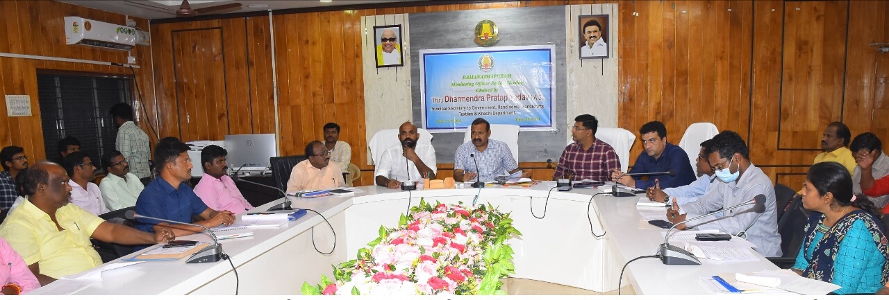ராமநாதபுரம் மாவட்ட மக்களுக்கு அரசு நலத்திட்டங்கள் முழுமையாக கிடைக்க அனைத்து துறைகளும் ஒருங்கிணைந்து செயல்பட வேண்டுமென அரசு முதன்மை செயலர் தர்மேந்திர பிரதாப் யாதவ் உத்தரவிட்டார்.