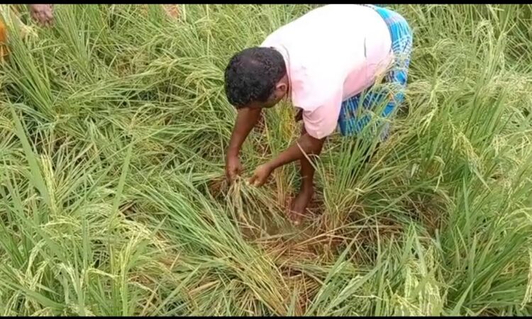 உசிலம்பட்டி அருகே ஆரியபட்டி கிராமத்தில் அறுவடைக்கு தயாரான நிலையில் நெற்பயிர்களை காட்டுப்பன்றிகள் சேதப்படுத்தி சென்றதால் விவசாயிகள் கவலை.