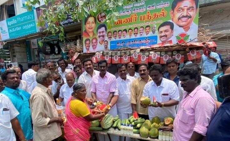 அதிமுக எம்ஜிஆர் இளைஞர் அணி சார்பில் காட்பாடி வள்ளிமலை சாலையில் தண்ணீர் பந்தல் திறப்பு விழா