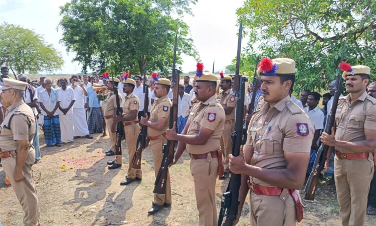 திருச்சியில் பணியின் போது மாரடைப்பால் உயிரிழந்த உளவுத்துறை காவல் ஆய்வாளர் திருமங்கலம் மேலஉரப்பனூரில் 21 குண்டுகள் முழங்க இறுதி அஞ்சலி
