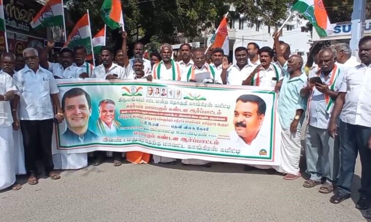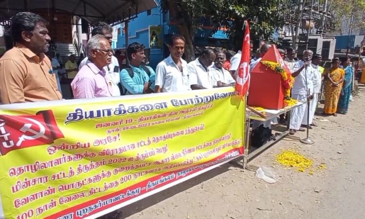 இராஜபாளையம் அருகே செட்டியார்பட்டி பகுதியில் 3 அம்ச கோரிக்கைகளை வலியுறுத்தி விசைத்தறி தொழிலாளர்கள் ஒரு நாள் வேலை நிறுத்தம் பேரணியாக சென்று ஆர்பாட்டம்.