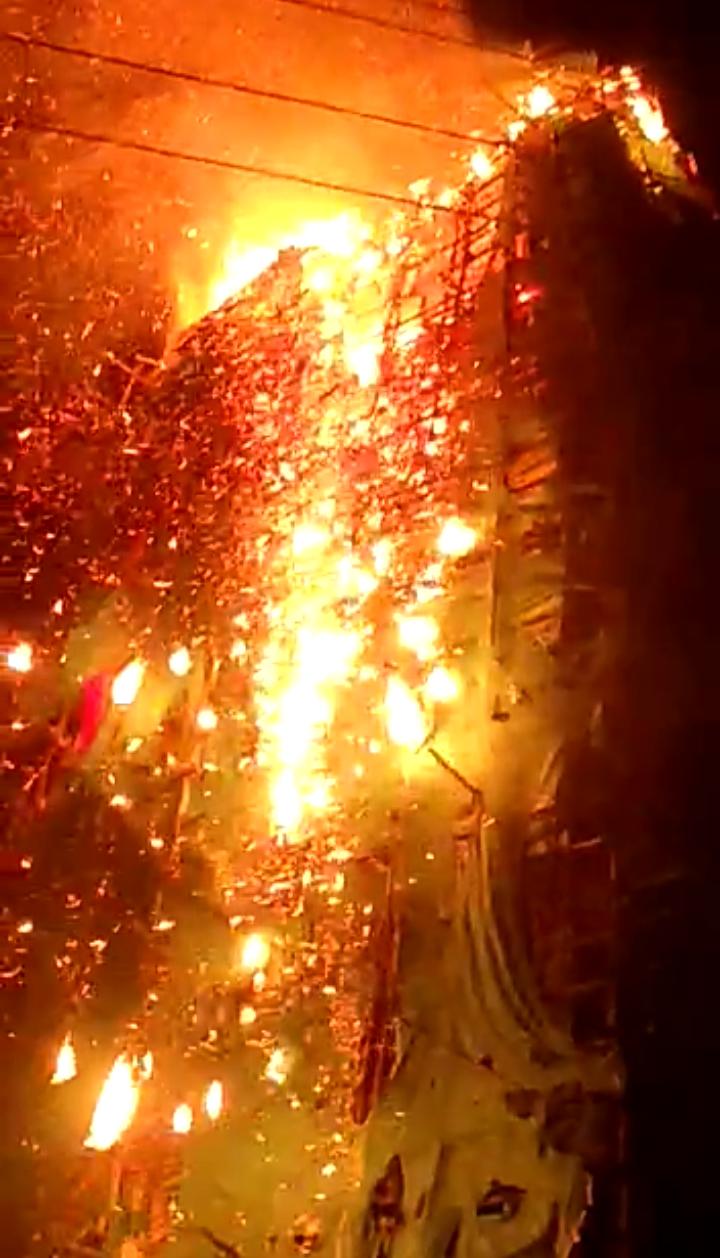 சிவகாசியில் பரபரப்பு பிரசித்திபெற்ற கோவிலின் கோபுரத்தில் திடீர் தீ விபத்து