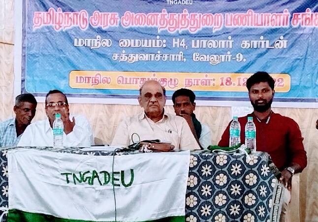 வேலூரில் தமிழ்நாடு அரசு அனைத்துதுறை பணியாளர் சங்க மாநில பொதுக்குழு கூட்டம் கௌரவத் தலைவர் சி.ராஜவேலு பங்கேற்பு