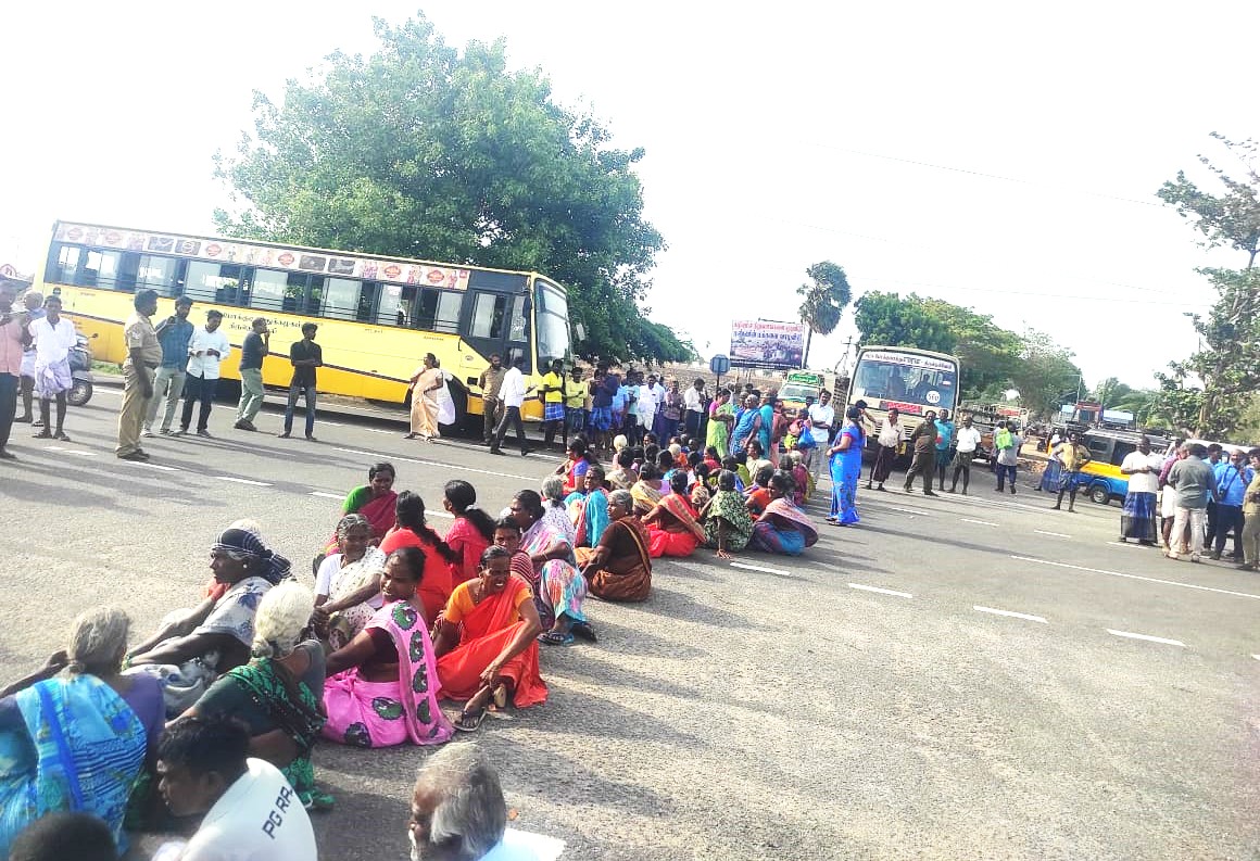 தூத்துக்குடி மாவட்டம் பொட்டலூரணியில் பேருந்து நிற்காததைக் கண்டித்து பொது மக்கள் திடீர் சாலை மறியல்